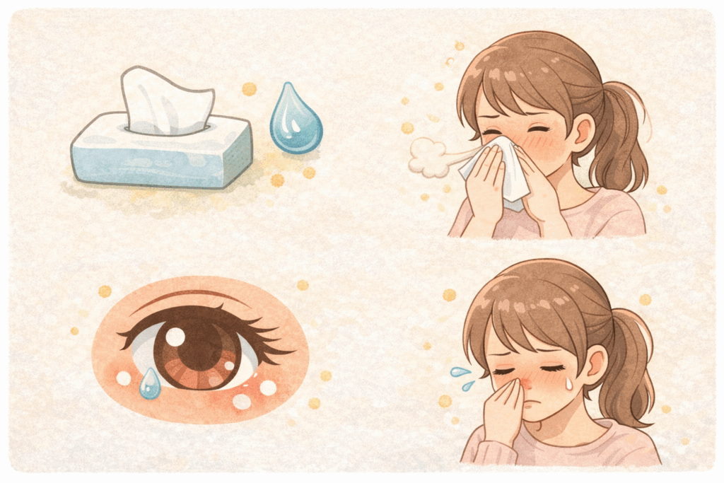 鼻水・鼻づまり・目のかゆみが続く方、市販薬で改善しない方は、医療機関で一度相談してみましょう。